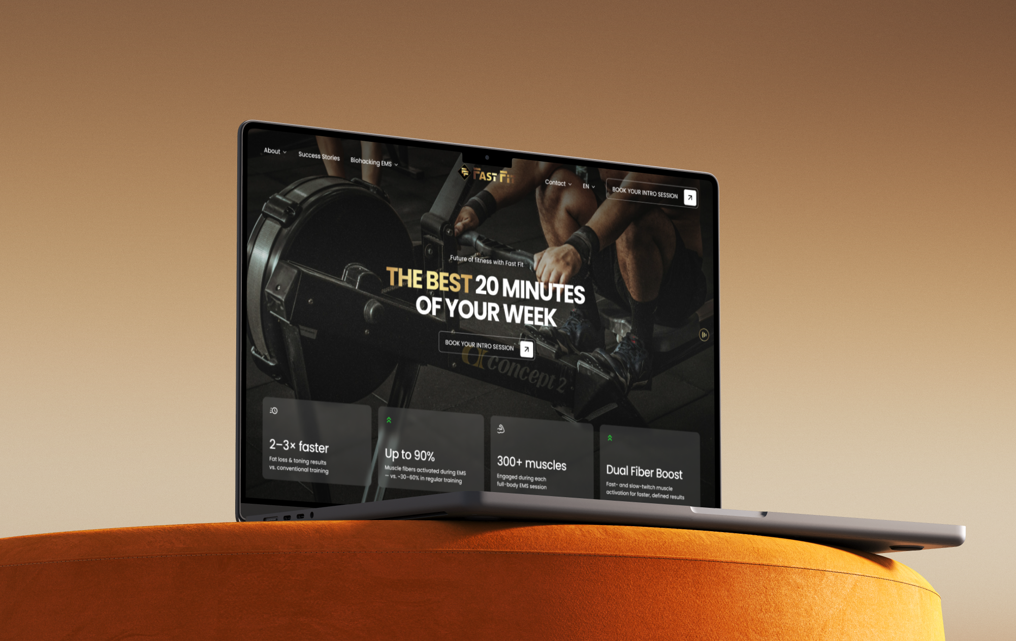 Website redesign for the UAE’s leading EMS fitness brand, combining bold visuals and seamless UX to amplify brand authority, boost engagement, and drive premium client perception.